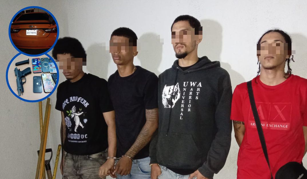 Los detenidos fueron identificados como Axxel Rafael Mateo Santana, Jeferson Oscar Rodríguez, Leonardo Xavier Hidalgo y Mario Alexis Alcántara, quienes, al momento del arresto, también portaban varios celulares de distintas marcas y documentos personales, los cuales se encuentran bajo análisis como parte del proceso de investigación.