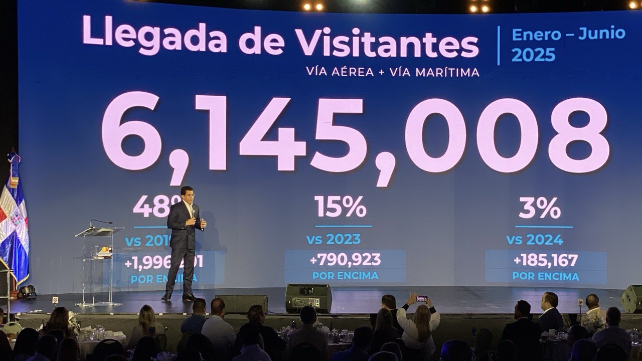 El ministro Collado, quien presentó las cifras con el notable crecimiento del turismo, informó que los 6,145,008 visitantes representa un incremento de un 48% frente al mismo período del 2019, un 15% respecto al 2023 y 3% con relación al 2024.