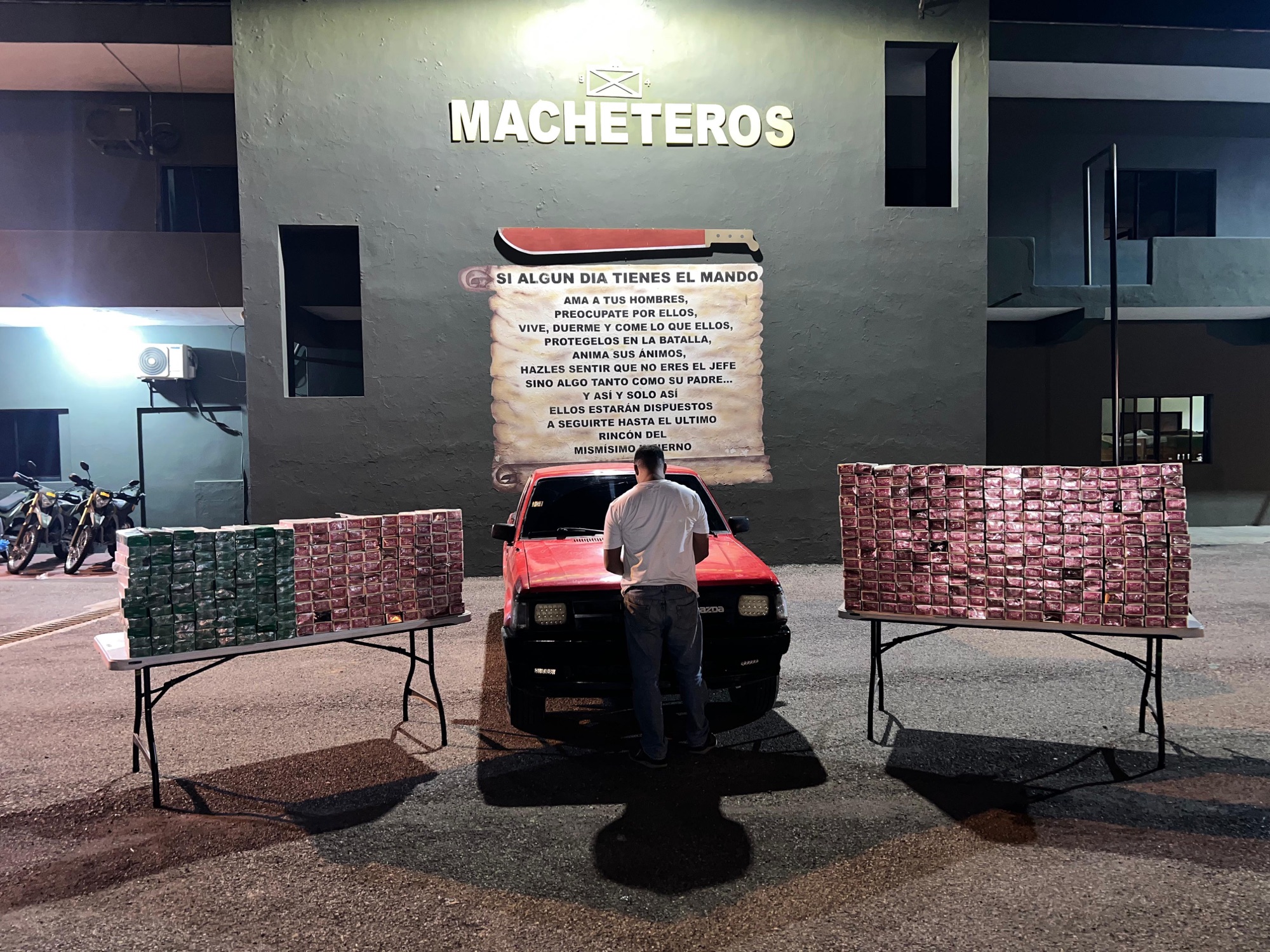 Al realizar la inspección del vehículo, los soldados detectaron compartimientos ocultos tipo túneles debajo del chasis, donde transportaba un total de 465 paquetes de cigarrillos, de los cuales 96 correspondían a la marca Jaisalmer y 369 a la marca Capital, para un total de 93,000 unidades.