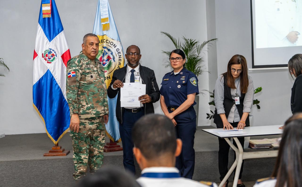 Los inspectores serán distribuidos en las terminales portuarias de Haina, Caucedo y Boca Chica, así como en los puestos fronterizos de Dajabón, Elías Piña, Pedernales y Jimaní. También en los Aeropuertos Internacionales del territorio nacional como el de Las Américas en Santo Domingo, Del Cibao en Santiago y de Punta Cana, entre otros. En el acto de entrega de certificados acompañaron a Lee Ballester, el director de Control Migratorio Coronel Manuel Antonio Carrasco Guerrero, ERD., y la directora de Recursos Humanos la Coronel Belkis Asiático Monte, de la Policía Nacional.
