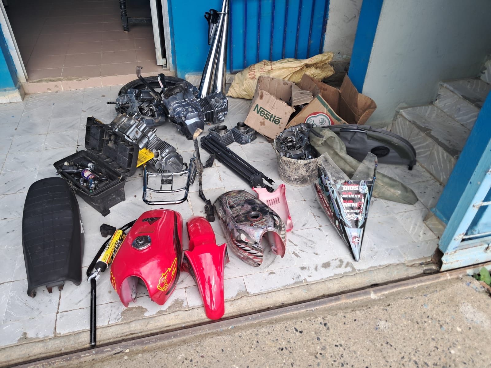 En el mismo operativo, efectuado en una residencia del sector Matanza, en la zona sur de la ciudad, las autoridades ocuparon varias motocicletas de distintas marcas, así como piezas, motores y herramientas, presuntamente vinculadas a actividades ilícitas.