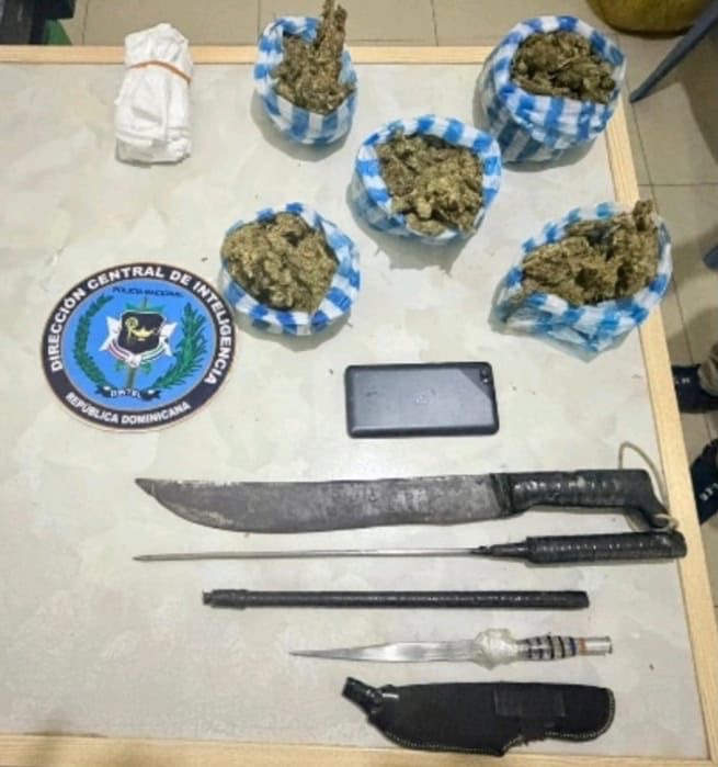 MOCA, PROVINCIA ESPAILLAT RD.-Agentes de la Policía Nacional, en coordinación con el Ministerio Público, ocuparon varias porciones de presunta marihuana, armas blancas y otros objetos durante un allanamiento realizado en el municipio de Moca, como parte de las acciones para reforzar la seguridad en la provincia.